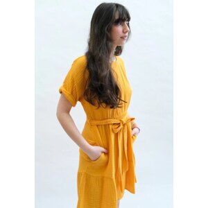 Bright yellow mini dress by XiRENA. Features a relaxed fit and tie waist. Perfect for casual outings.