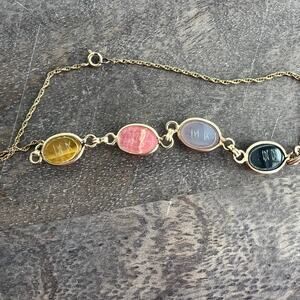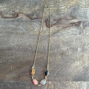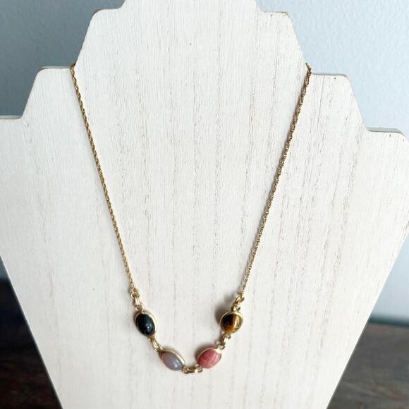 XiXi handmade multicolor stone station necklace on gold tone chain