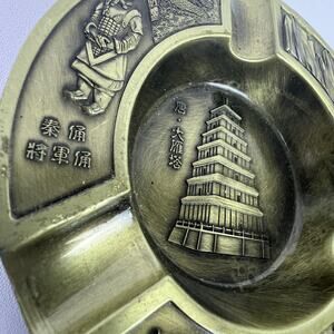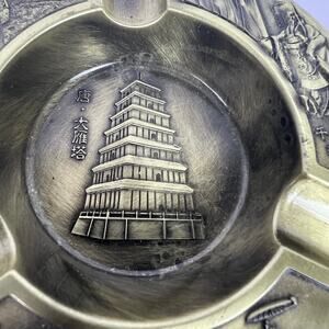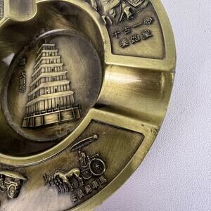 Xi'an China Engraved Brass Cigarette Ashtray 4 3/4" diameter