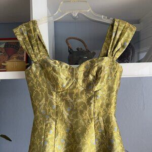 Xiaoli Dress Floral Jacquard Nameless Clueless Fameless Bustier Corset Green/Yellow/Blue