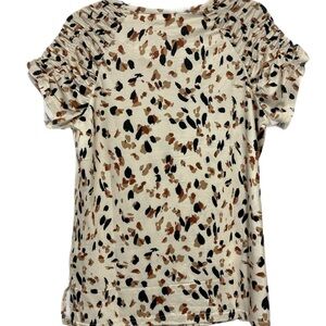 Xieerduo Cream Black and Brown Short Sleeve Rouche Sleeve Blouse Top NWT