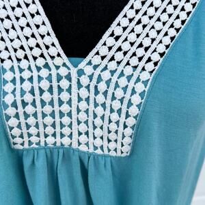 Xieerduo women's 2 XL Green V neck with crochet type of trim.