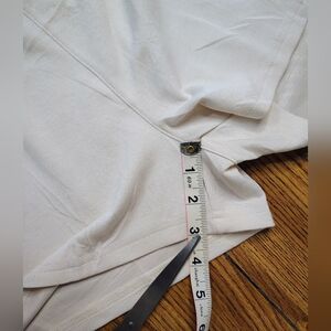 Xieerduo 2024 Summer Loose Romper for Women, Size L, Ivory Apricot, Short Jumpsuit, Round Neck, Button Closure at Back, Pullover, Adjustable Drawstring Strap at Elastic Waist, Soft Touch Fabric, 49% Polyester, 44% Rayon, 7% Spandex, Well Washed, Worn Once, Excellent Condition.