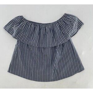 Xilaration Blue & White Striped Off Shoulder 100% Cotton Boho Blouse Festival M