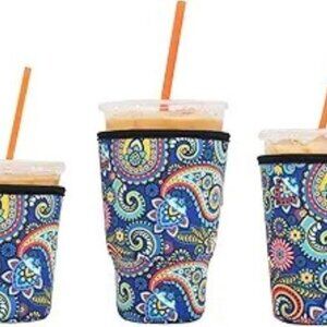 NIB 3 Pack Reusable Iced Coffee ☕Sleeves – (Retro☮️ print)
