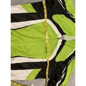 The Xintown Cyclist Shirt with a rear pocket and zipping pouch in size L is a vibrant and practical piece of activewear for men. Made from 100% polyester jersey fabric, this shirt features short sleeves, a zip closure, and a black, green, and white color palette that is perfect for outdoor activities like cycling. The rear pocket and zipping pouch add functionality for storing essentials while on the move. This casual shirt from the Xintown brand is machine washable and suitable for any man looking for comfortable and stylish cycling attire.