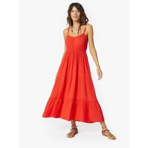 Xirena Ali Cotton Gauze Tiered Midi Dress Sleeveless Red Orange Boho Size Medium
