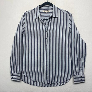Xirena Beau Everton Long Sleeve Striped Button Down Shirt Blue Sparkle Stripe XS