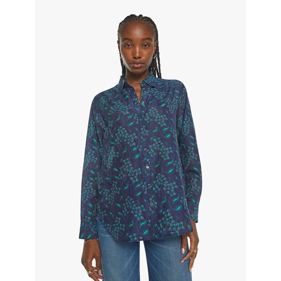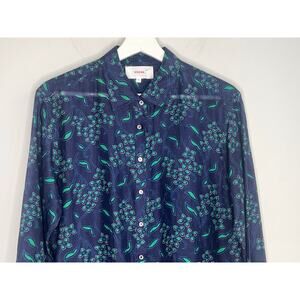 Xirena Beau Floral Print Long Sleeve Button-Up Shirt Navy/Green Women's Size XS