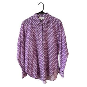 Xirena Beau Shirt Button Up Blouse Top Size S Purple Clover Print Cover-Up Beach