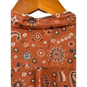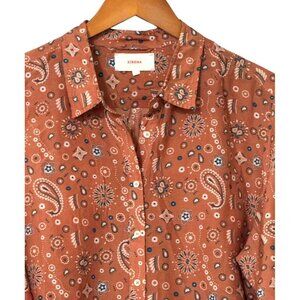 Xirena Beau Shirt in Spice Bandana Mocha Teal Cotton Silk Long Sleeve Size L