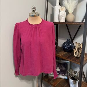 Xirena Berry Pink 100% Cotton Gauze Long Sleeve Top Shirt MED