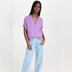 Xirena Blouse Avery Cotton Gauze Short Sleeve in Plumeria Purple