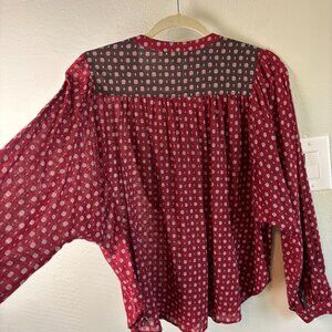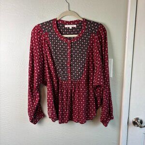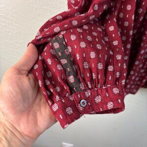Xirena Burgundy Cotton Boho Blouse Women’s S Lightweight Geometric Print