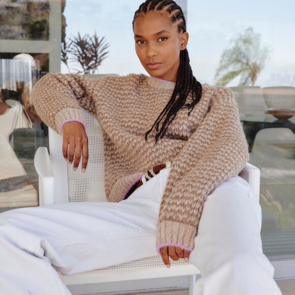 An artisanally crafted crewneck sweater made from a superfine alpaca blend and finished with chunky ribbed trims and contrast tipping.