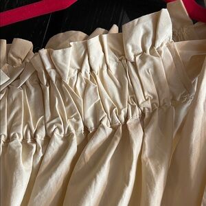 Stylish cream maxi dress with gathered top and one shoulder tie and pockets! Versatile and chic.