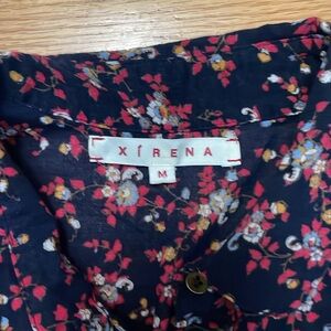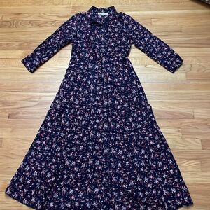 Xirena Dalton Shirt Dress Womens Navy Blue Pink Long Sleeve Floral Maxi M