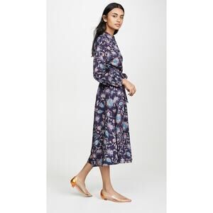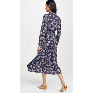 New Xirena Ever Dress Blue Silk Floral Button Front Self-Tie Long Sleeve Sz S