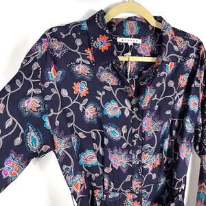 Xirena Ever Shirt Dress Blue Silk Cotton Floral Button Front Long Sleeve Sz S