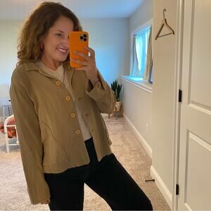 I'm so in love with this stunning designer Xirena brown/green pure cotton gauze lightweight staple neutral button front jacket