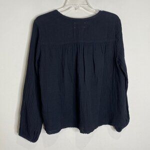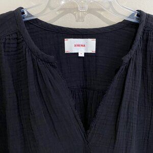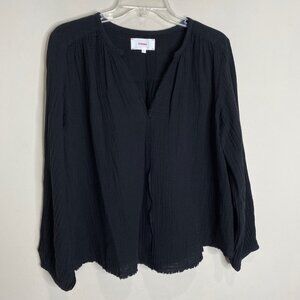 Xirena Hortense V-Neck Raw Frayed Edge Long Sleeve Blouse Black M