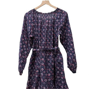 elastic ruffle neck, soft elastic cuffs, and a self-tie sash.