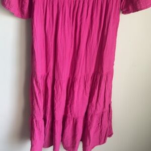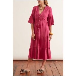 Soft and swingy, this XIRENA dress is cut from the brand’s signature Chelsea gauze and features a flutter sleeve and tiered skirt. Pair with a wrap-up sandal and beaded jewelry for an easy summer look. Fabric: Mid-weight, non-stretch soft gauze V neck and button placket Elbow-length sleeves with flared cuffs Tiered seams On-seam hip pockets Shell: 100% cotton Lined Made in the USA