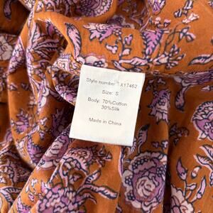 Xirena Lea Cottage Boho Brown Floral Dress Small Oversized Golden Silk Cotton