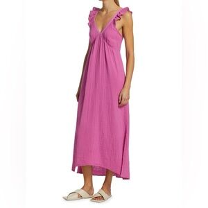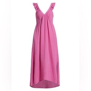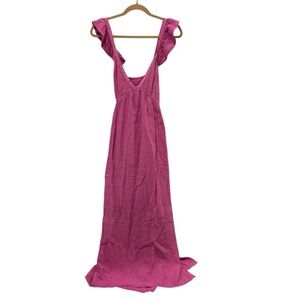 Xirena Leyla Midi Dress Womens XL Pink Sleeveless Flutter Sleeve V-Neck Cotton