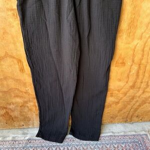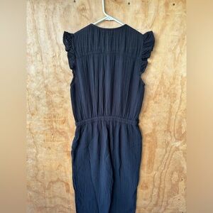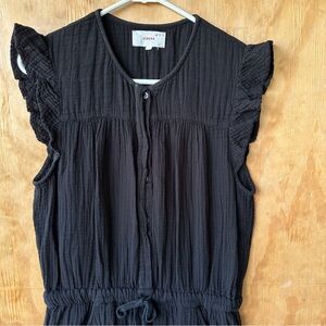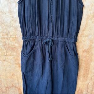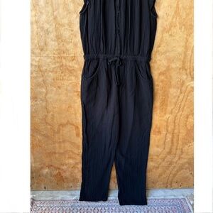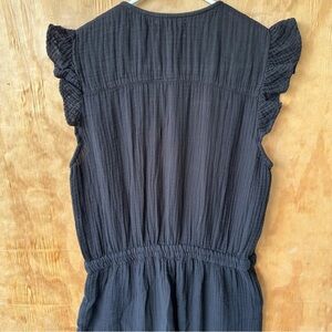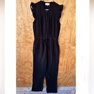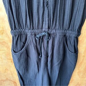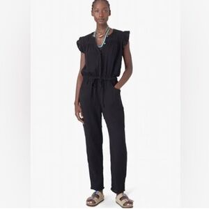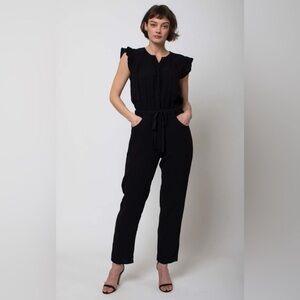 Xirena Loghan Black Cap Sleeve Gauze Straight Leg Tie Waist Jumpsuit