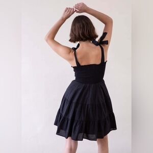 Xirena Lori Mini Dress Womens Small black Smocked Sleeveless Tie Sleeve summer