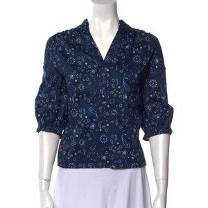 Xirena Lucia Navy Paisley Print Blouse size Large (L)