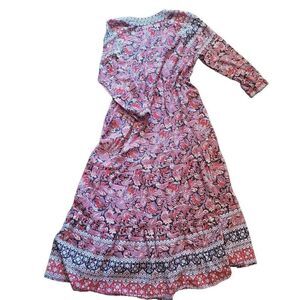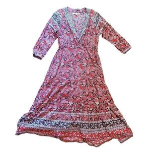 Xirena Midi Dress Women's Medium Tenley Faux Wrap Tiered Floral Boho Sleeves