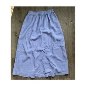 Stay effortlessly breezy in this soft periwinkle cotton midi skirt by Xirena. Designed with a gathered elastic waist for comfort and a subtle button-down front detail for added texture. The lightweight cotton fabric makes it ideal for warm weather, travel days, or weekend strolls.