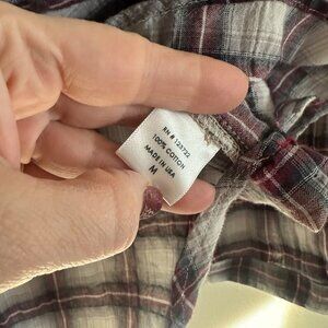 Xirena Plaid Collared Cotton Half Button Tunic Top - Size Medium