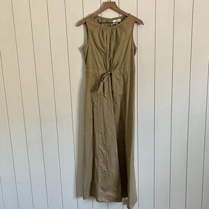 Dress to Impress. Xirena Rhiannon is made in a crisp cotton poplin. Rhiannon is a tank maxi dress with an elasticized tie-waist, shirring throughout, and keyhole back with button closure.