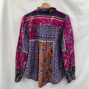 Xirena S Kiera Patchwork Silk Cotton Blend Top Blouse