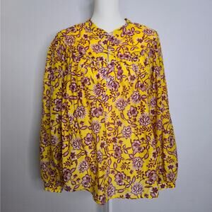 Xirena Silk Blend Floral Popover Button Front Blouse Size M Cottage Prairie Boho