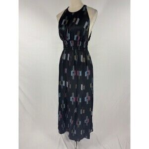 Xirena Tavia Silk Maxi Dress Black Ikat Print Small Halter Neck Pockets Backless