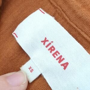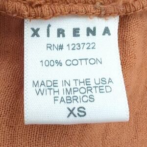 Xirena women's top size extra small 100% cotton made in the USA Orange button front casual length 25 front 27 back pit to pit 21 in gently pre-owned condition! In burnt orange pumpkin color gauze crepe textured