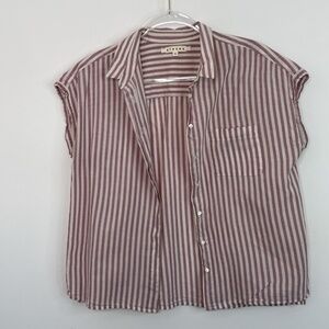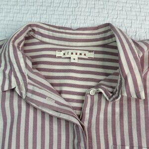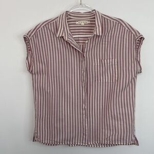 Xirena Wess Shirt S Mesa Rosa Striped Pink White Cotton Button Up Made in USA