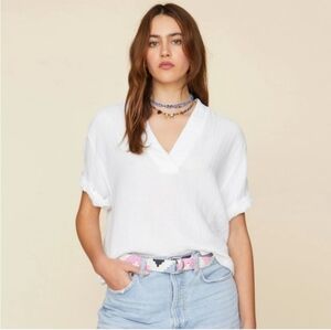 Xirena White Cotton Gauze Popover Top Blouse Medium