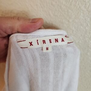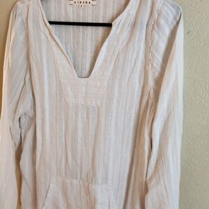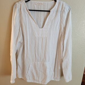 Xirena white top. Long sleeves. 100% gauzy cotton. V neck. Striped design. Front kangaroo pocket. Lagenlook vibes.