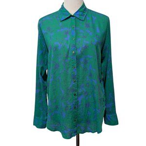 Xirena Womens Size XS Beau Ibiza Blue Green Floral Button Cotton L/S Blouse Top