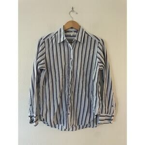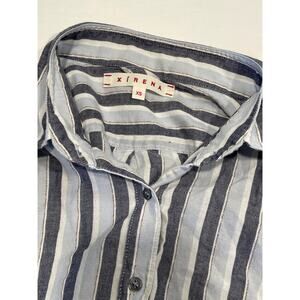 Xirena Women's Stripe Beau Button Up Shirt XS Blue Metallic Long Sleeve Blouse