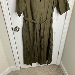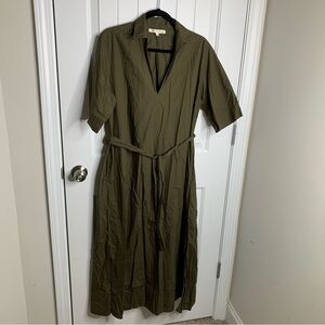 Xirena green moss Ryann belted cotton midi dress medium short sleeves minimalist