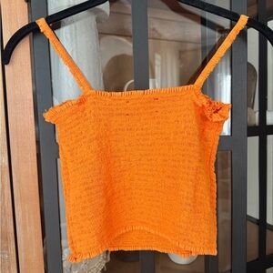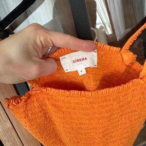 Xirena smocked tank top issa shirred apricot neon square neck cropped