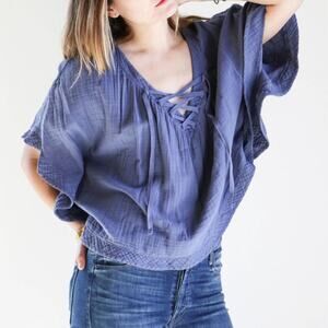 Xirena the Roxy cotton gauze lace up caftan sleeve top sz S oversized
