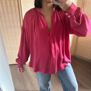 Mayson is back this season in our sandwashed silk charmeuse. Mayson has a split neck, drop shoulders, and high low hem.