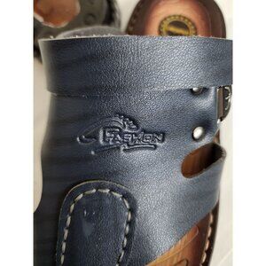 XiuXian Men's Navy Blue/Brown Fashion Leather Flip Flop Slipper Sandal Size 42